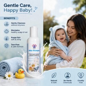 🌿 Mild & Safe – Specially formulated for babies’ delicate hair and sensitive scalp.