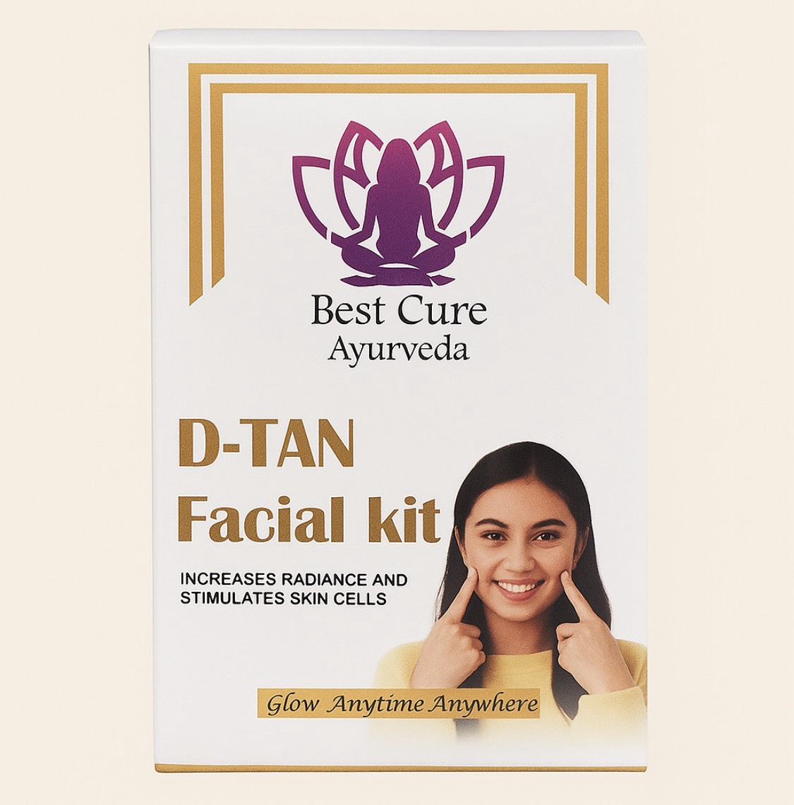 D-TAN Facial Kit is an Ayurvedic skincare solution formulated to gently remove sun tan, restore natural glow, and revitalize tired skin. Enriched with herbal extracts and natural brightening agents, it effectively cleanses impurities, evens skin tone, and enhances radiance.
