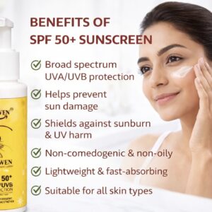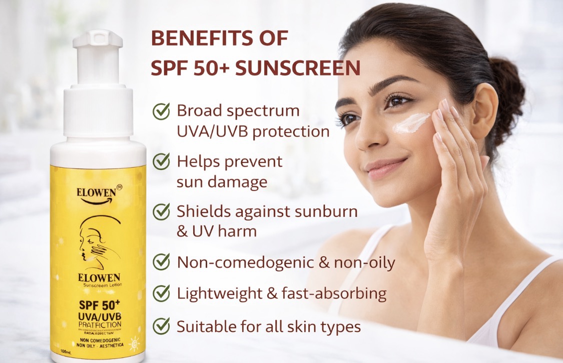 Apply a generous amount of sunscreen evenly on face and exposed skin 15–20 minutes before sun exposure. Reapply every 2–3 hours for continuous protection, especially after sweating or washing.