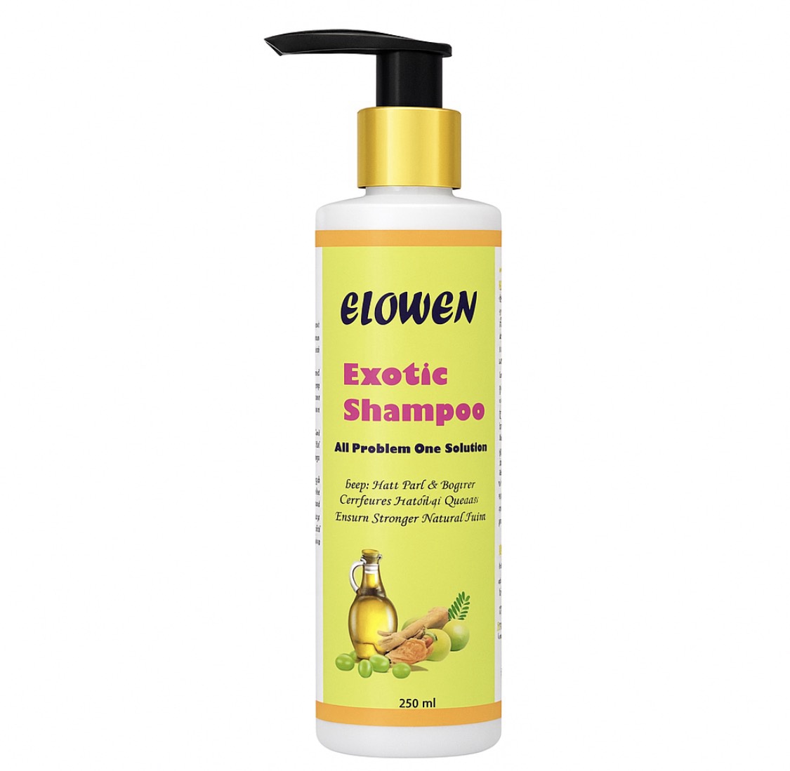 Elowen Exotic Shampoo is an Ayurvedic proprietary blend of powerful herbs and natural extracts formulated to address all major hair concerns — hair fall, dullness, and weak hair. This herbal shampoo not only deeply cleanses the scalp but also strengthens hair from the roots, promoting faster and healthier growth.