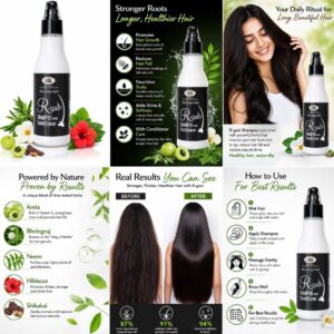 Enriched with Ayurvedic herbs like Amla, Bhringraj, Neem, Aloe Vera, Tulsi, Shikakai, and Reetha